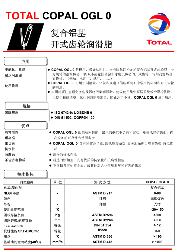 TOTAL COPAL OGL 0 复合铝基开式齿轮润滑脂