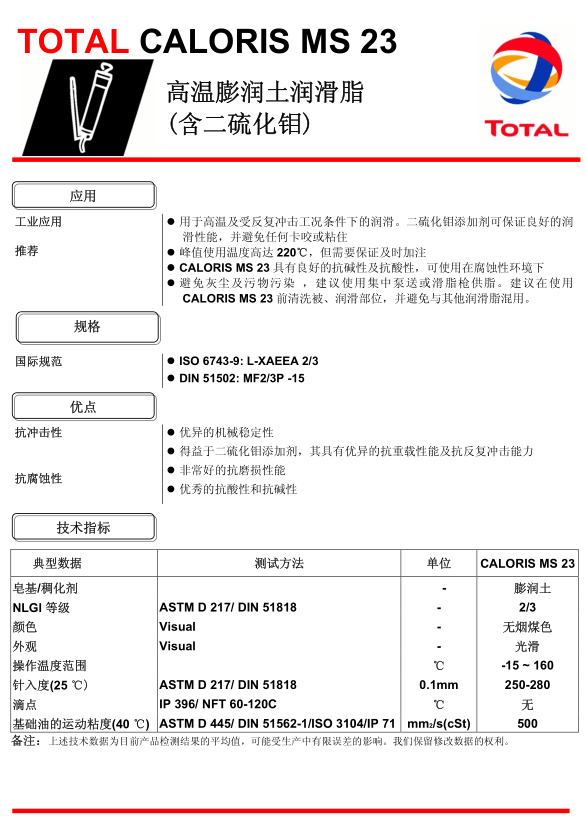 TOTAL CALORIS MS 23 高温膨润土润滑脂(含二硫化钼)