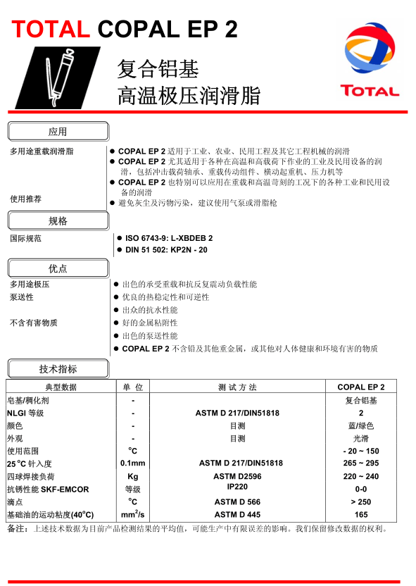 TOTAL COPAL EP 2 复合铝基高温极压润滑脂