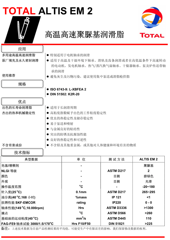 TOTAL ALTIS EM 2 高温高速聚脲基润滑脂