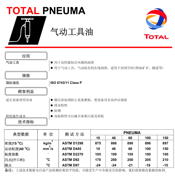 » 产品展示 » 道达尔空气压缩机油 » TOTAL PNEUMA 气动工具油-系列