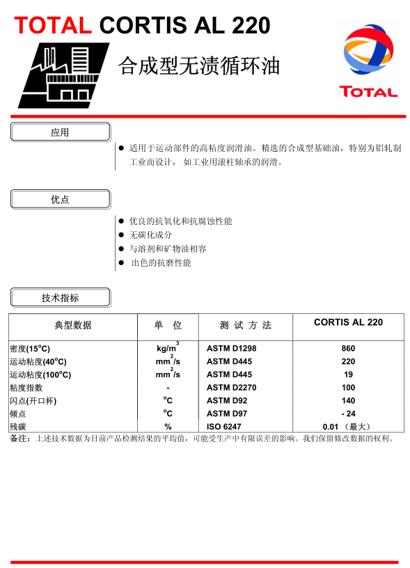 TOTAL CORTIS AL 220 合成型无渍循环油-系列