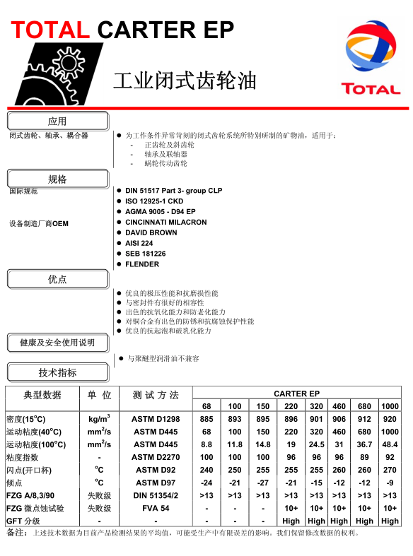 » 产品展示 » 道达尔齿轮油 » TOTAL CARTER EP 工业闭式齿轮油-系列