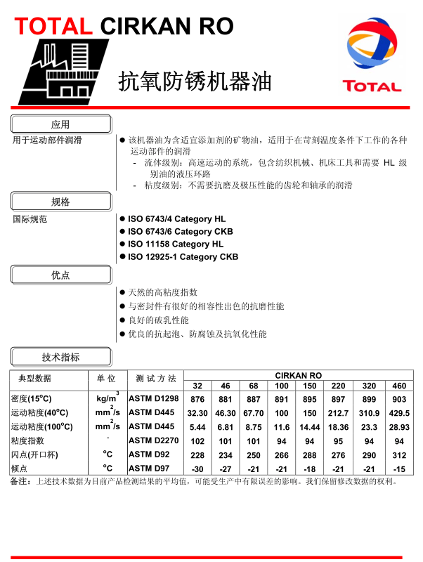 TOTAL CIRKAN RO 抗氧防锈机器油-系列
