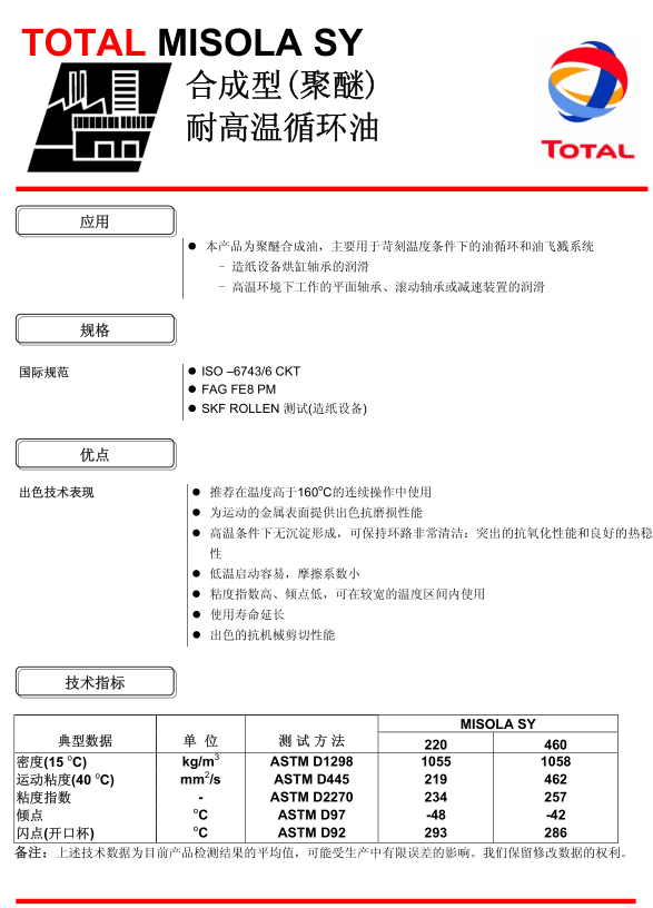 TOTAL MISOLA SY 合成型(聚醚)耐高温循环油-系列