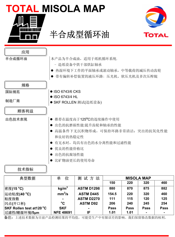 » 产品展示 » 道达尔循环油 » TOTAL MISOLA MAP 半合成型循环油-系列