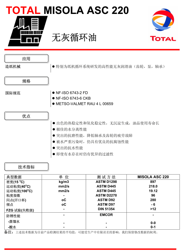 » 产品展示 » 道达尔循环油 » TOTAL MISOLA ASC 220 无灰循环油