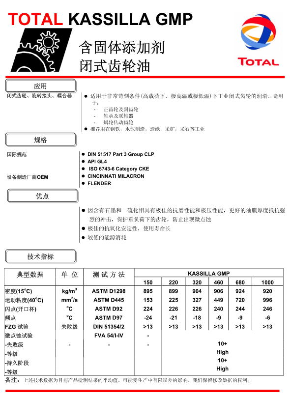 TOTAL KASSILLA GMP 含固体添加剂闭式齿轮油-系列