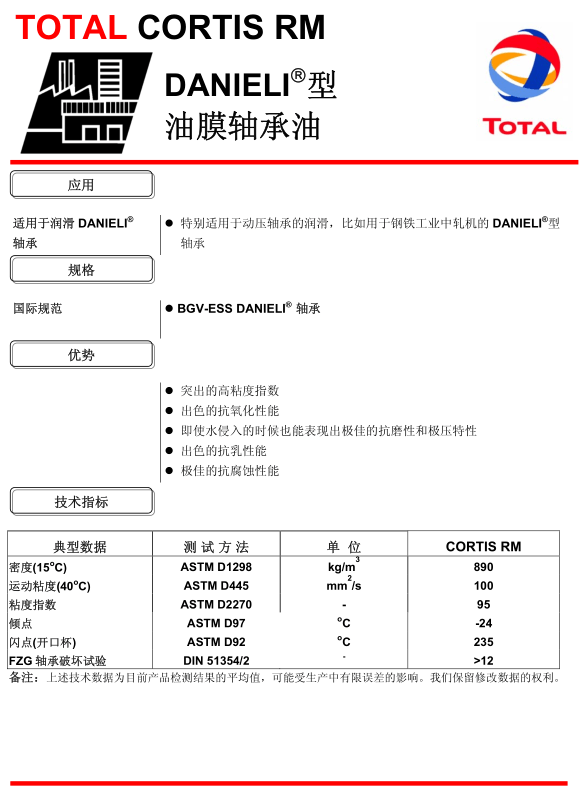 TOTAL CORTIS RM DANIELI 型油膜轴承油-系列