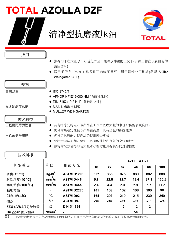 TOTAL AZOLLA DZF 清净型抗磨液压油-系列