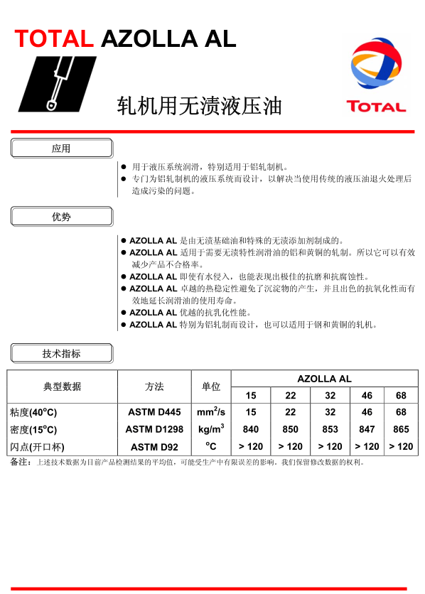 TOTAL AZOLLA AL 轧机用无渍液压油-系列
