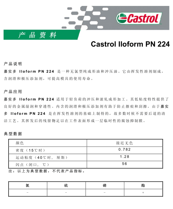 嘉实多 Iloform FN 242 无氯型纯成形油和冲压油