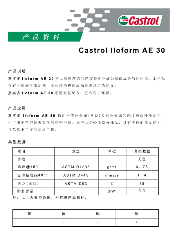 嘉实多 Iloform AE 30冲压油
