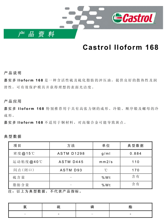 嘉实多 Iloform 168 冲压油成型油