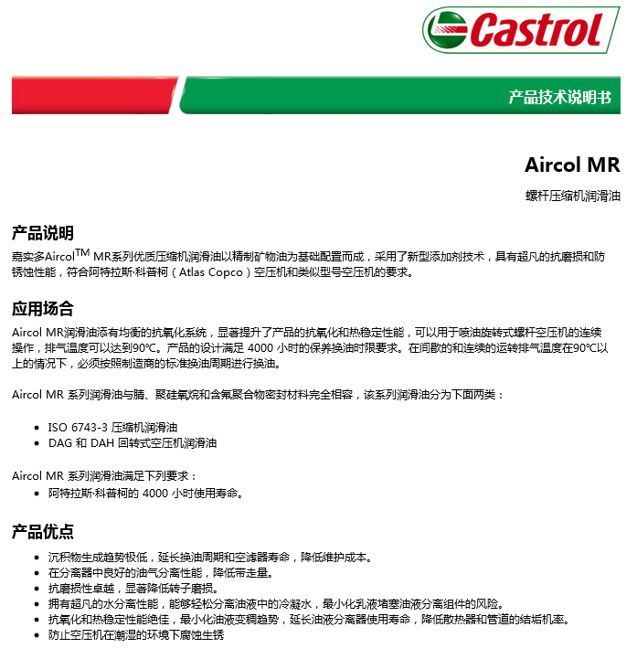 » 产品展示 » 嘉实多空气压缩机油 » 嘉实多 Magna CL 螺杆压缩机润滑油