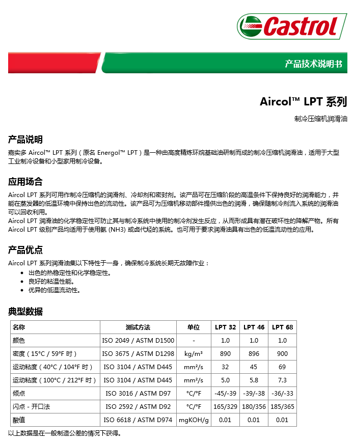 » 产品展示 » 嘉实多空气压缩机油 » 嘉实多 Aircol LPT 制冷压缩机油 系列