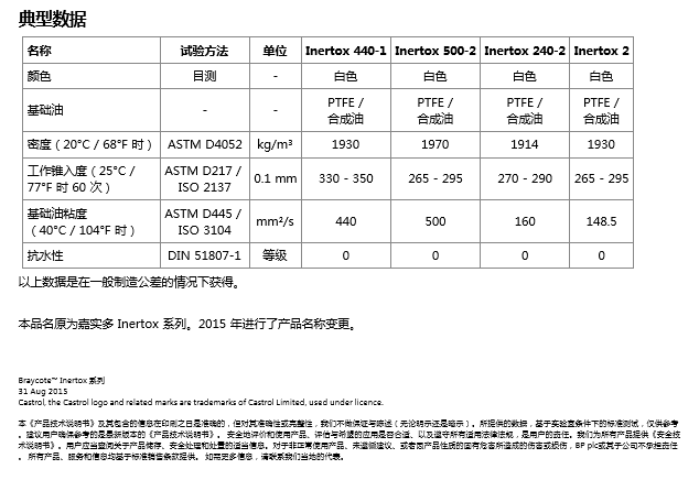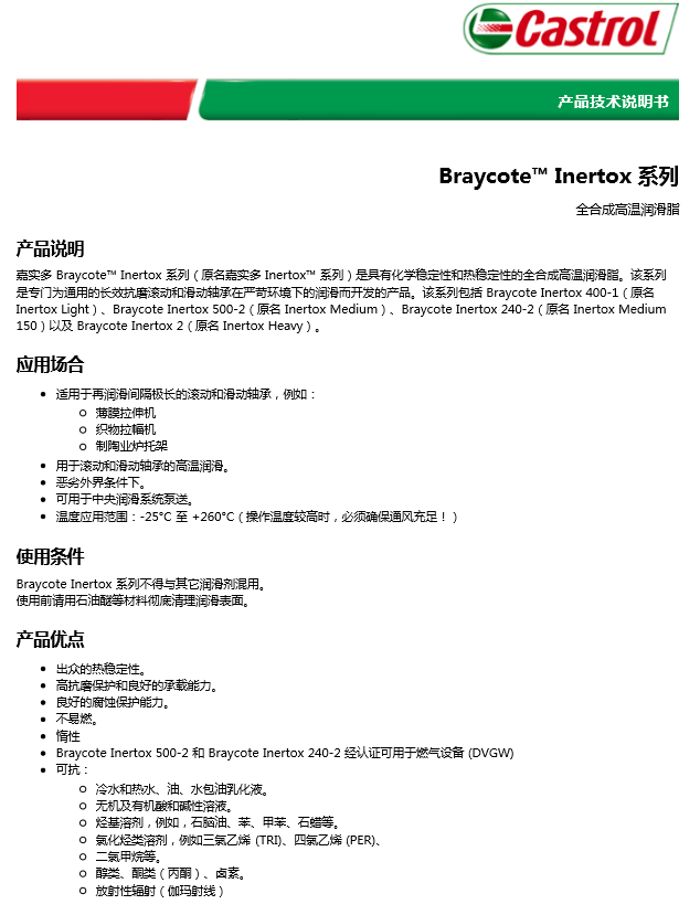 嘉实多Braycote Inertox 合成高温润滑脂-系列