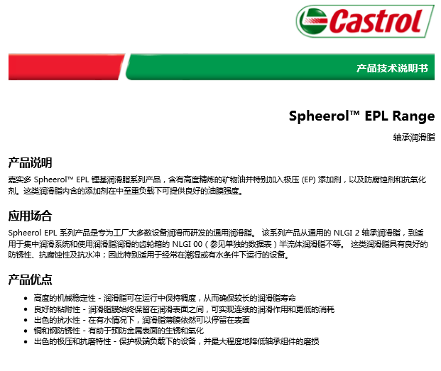 » 产品展示 » 嘉实多润滑脂 » 嘉实多 Spheerol EPL 锂基润滑脂-系列