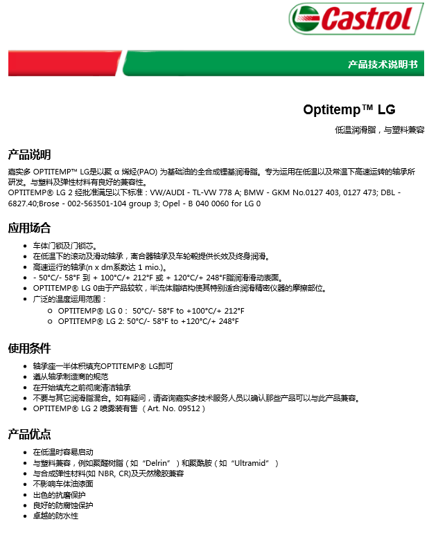 当前位置:网站首页 » 产品展示 » 嘉实多润滑脂 » 嘉实多Optitemp LG 低温润滑润滑脂-系列