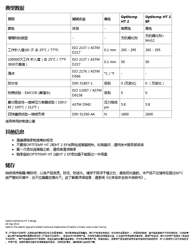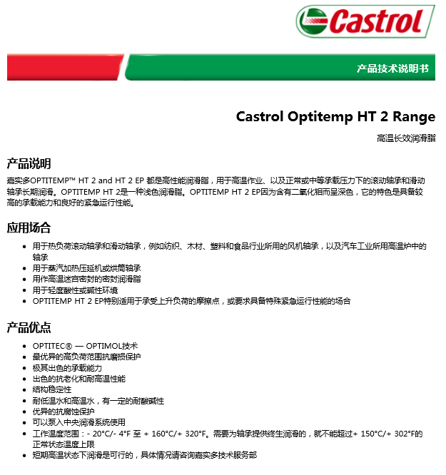 » 产品展示 » 嘉实多润滑脂 » 嘉实多OPTITEMP HT 2 and HT 2 EP润滑脂