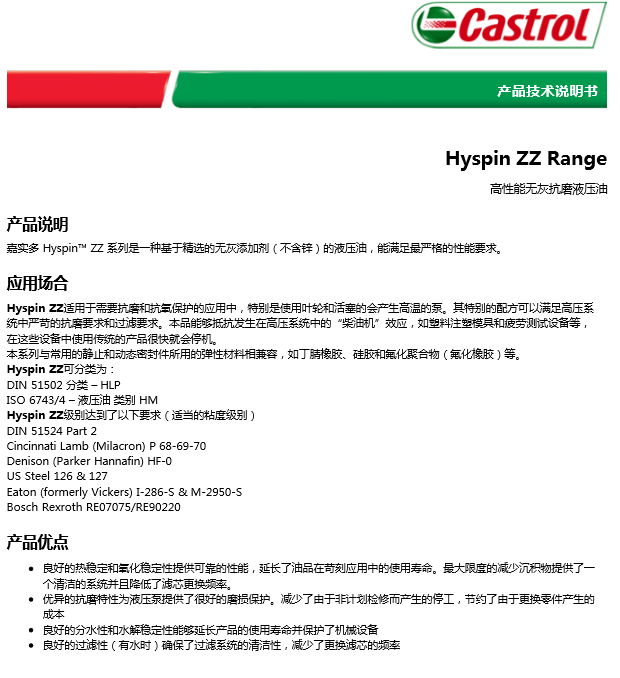 嘉实多 Hyspin ZZ 高性能无灰抗磨液压油-系列