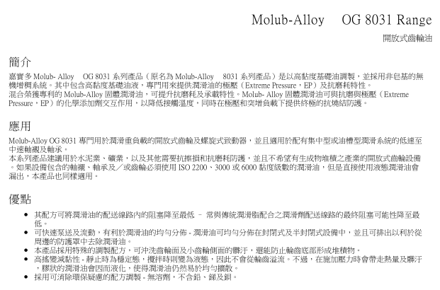 嘉實多 Molub- Alloy OG 8031開式齒輪油-系列