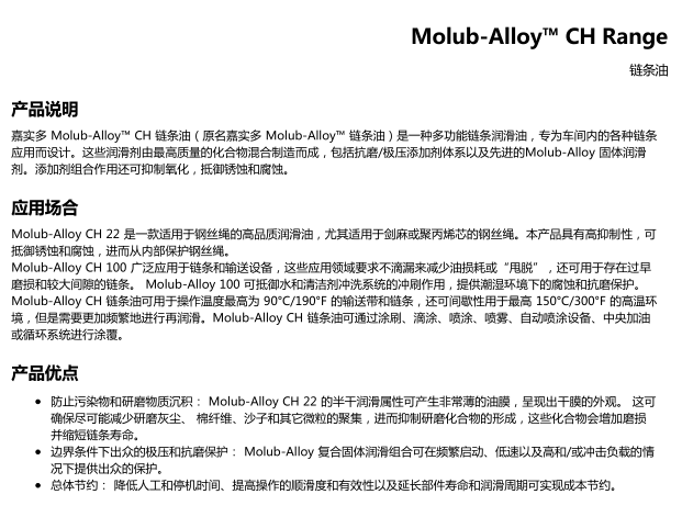 » 产品展示 » 嘉实多齿轮油 » 嘉实多 Molub-Alloy CH 链条油-系列