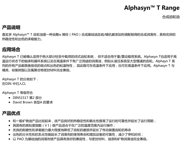 » 产品展示 » 嘉实多齿轮油 » 嘉实多 Alphasyn T 合成齿轮油-系列