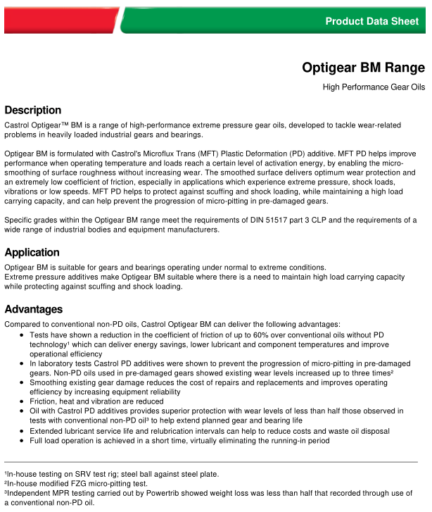 » 产品展示 » 嘉实多齿轮油 » Castrol Optigear BM合成齿轮油-系列