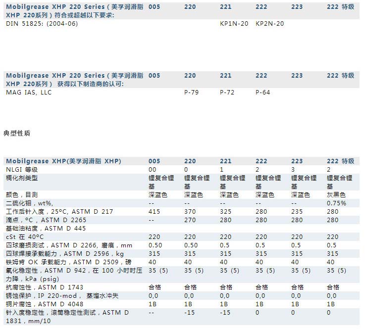 | Mobilgrease XHP 220 Series (美孚润滑脂 XHP 220系列) 润滑脂