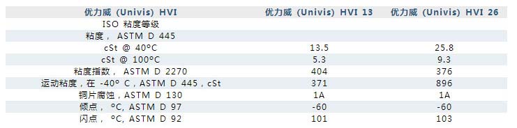| 优力威 (Univis) HVI 是一系列高品质抗磨液压油,具有特别高粘度指数的特点。它们是为在广泛的温度范围应用上 黏度变化较小而设计的。优力威 (Univis) HVI 液压油具有较强抗粘度改变的能力,推荐用于温度变化较大的液压系统。 由于要依靠恒定不变的粘度来获得液压精度,许多系统对液压油的粘度改变敏感。本产品系列在零度以下的流动性好,而且能抗剪切和粘度损失,在高操作温度和压力下,可保持系统效率,极少出现系统内部泵漏。这些高品质液压油还可为高压叶片、活塞和齿轮泵提供优异的抗磨保护。优力威 (Univis) HVI 液压油是为提供优异的氧化稳定性,减少沉淀物形成以及提高泵和阀门性能而设计的。 它们是通过与主要原设备制造商(OEM)配合研制出来的,能满足在严苛操作条件下工作的液压系统最严格的要求,这些液压系统含有高压、高输出泵,并能处理其他液压系统元件的严格操作要求。 特性与优点 优力威 (Univis) HVI 液压油在很广的温度范围内具有杰出的粘度控制。本系列产品的抗氧化性佳, 可延长油品和过滤器更换 周期,同时保持系统清洁。它们具有高的抗磨性能和非常佳的油膜强度的特点,使设备具有卓越的性能,不但可减少设备故障,而且有利于提高生产量。它们分水性能好,能在具有少量进水的系统中正常工作,并能迅速将大量的水分离。 优力威 (Univis) HVI 液压油具有以下优点: 具有粘度指数特别高和粘度控制佳的特点,可提高机械的精度并降低扭矩倾点很低,能在低温下保持非常好的流动性适用于在很冷的条件下运行的液压设备,例如在很冷气候下的冷藏和移动设备运作 均衡的粘度控制、快速的空气释放、很好的泡沫控制和水分离性,能实现高性能和平稳液压操作独特的抗锈蚀和防腐蚀保护,可减少水分对系统元件的不利影响有效的氧化稳定性,可减少积垢,提高阀门性能 应用范围 在很大的温度范围内保持液压油粘度基本不变的极其重要的液压系统 静压传动和减震器 还可用于精密仪器及其他动力输入受限且不能承受由润滑油稠化引起的扭矩增加的机构中 用于采用紧公差伺服阀的设备中减少积垢形成 经常冷起动及运行温度高的系统 要求高承载能力和抗磨保护的系统 抗锈蚀和防腐蚀保护较重要的应用,例如具有不可避免的少量进水的系统 典型性质