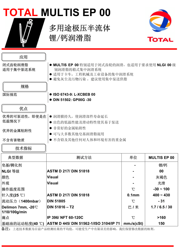 TOTAL MULTIS EP 00 多用途极压半流体锂钙润滑脂
